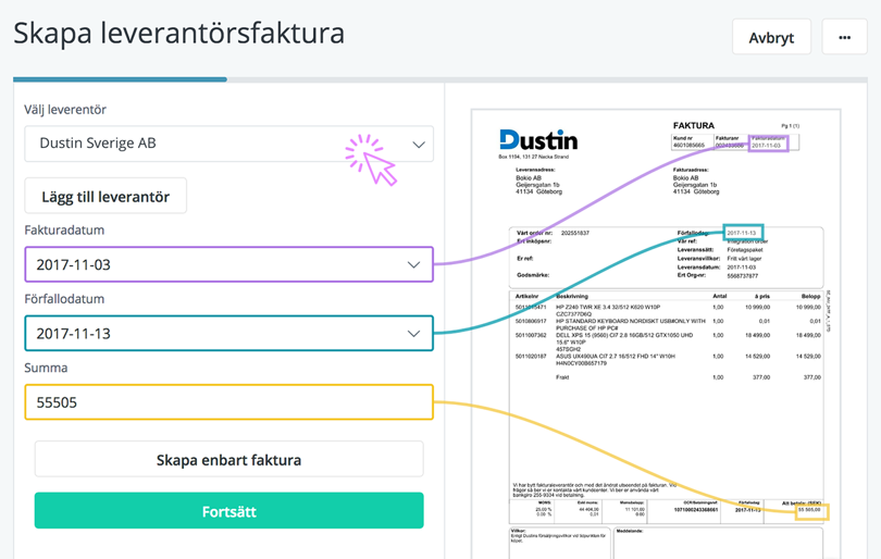 Genom att betala fakturor så fort du får dem kan du se till att skapa en bra relation med din leverantör och undvika onödiga förseningar. Har du inte tid eller pengar att göra detta dagligen, kan du ändå registrera fakturan i Bokio så att du inte glömmer bort den.