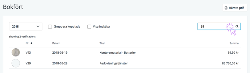 - Nu har vi slagit på vårt nya moderna gränssnitt för “Bokfört” för alla användare. Här kan du filtrera, gruppera, sortera bland dina verifikationer för hela räkenskapsår, månader eller valfritt intervall och även redigera dem för att till exempel ladda upp underlag. Se guiden [Vad händer när jag bokfört ett verifikat?]