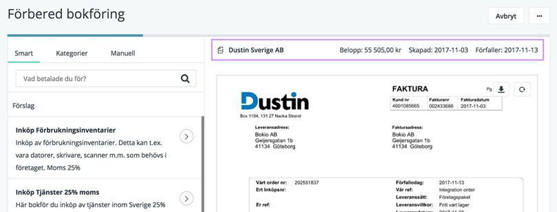 - När man bokför bank importer, leverantörsfakturor eller anställdas utlägg kan man nu hela tiden se de värden som är relevanta för att identifiera det man bokför.