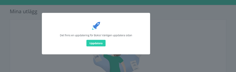 - När en ny version av Bokio lanseras så har många tidigare fått att flera sidor inte kan laddas. Detta på grund av att de filerna som behövs för den sidan inte längre finns kvar. Lösningen är att ladda om sidan men det är ju inte så lätt att veta så framöver kommer ni i det läget få upp detta meddelande.