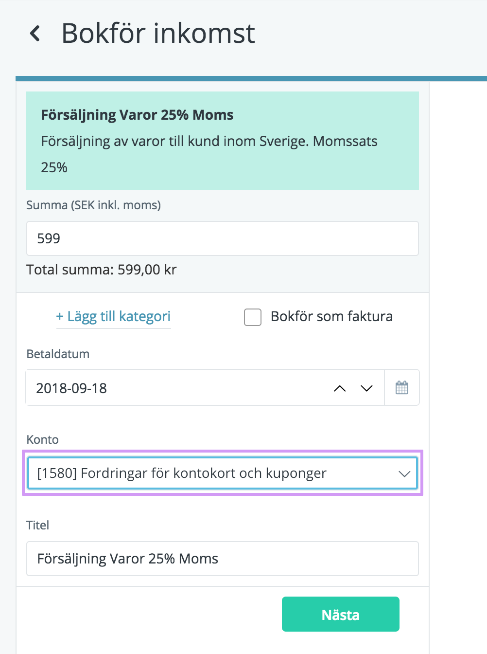 Läs mer hur du hanterar försäljning med PayPal, iZettle och liknande.