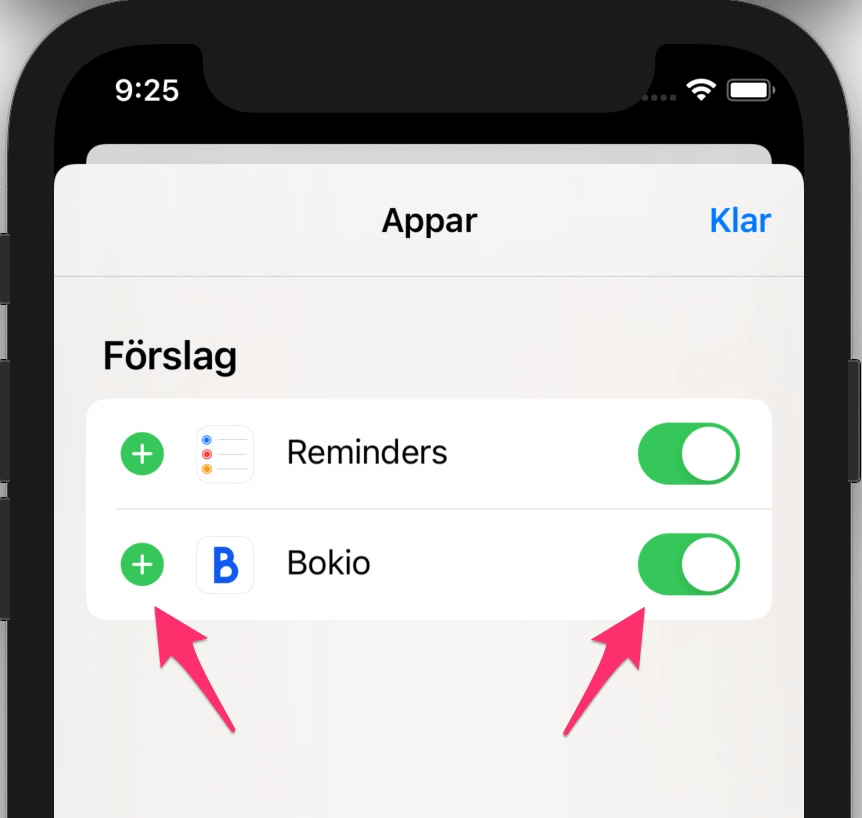 Om du inte hittar Bokio bland appar att dela med kan du enkelt lägga till det genom att göra följande: