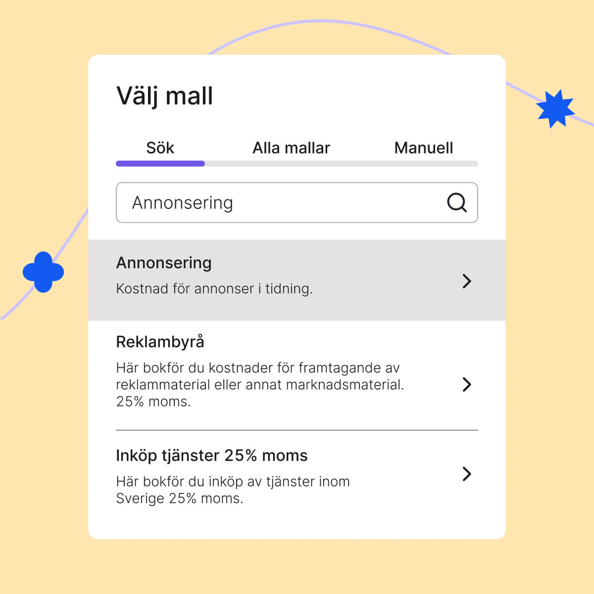 När betalningen är signerad väljer du en färdig mall så bokförs fakturan automatiskt när pengarna dras.
